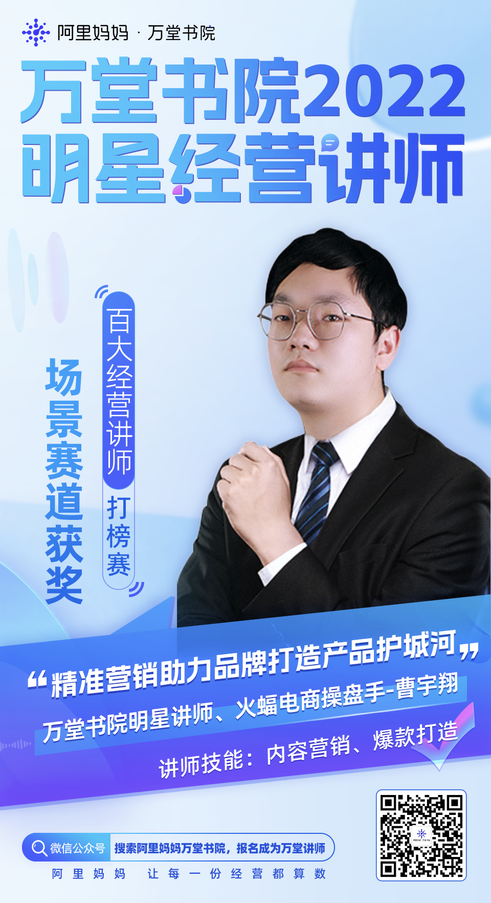 為了服務(wù)更多商家獲得經(jīng)營(yíng)確定性成長(zhǎng),在天貓雙11期間,阿里媽媽萬(wàn)堂書(shū)院開(kāi)啟「百大經(jīng)營(yíng)講師招募令」,設(shè)人群、貨品、場(chǎng)景、行業(yè)四大經(jīng)營(yíng)賽道,邀請(qǐng)眾多營(yíng)銷(xiāo)資深從業(yè)者、電商操盤(pán)手一起,分享大促期間的數(shù)智化經(jīng)營(yíng)的策略和實(shí)戰(zhàn)方法。